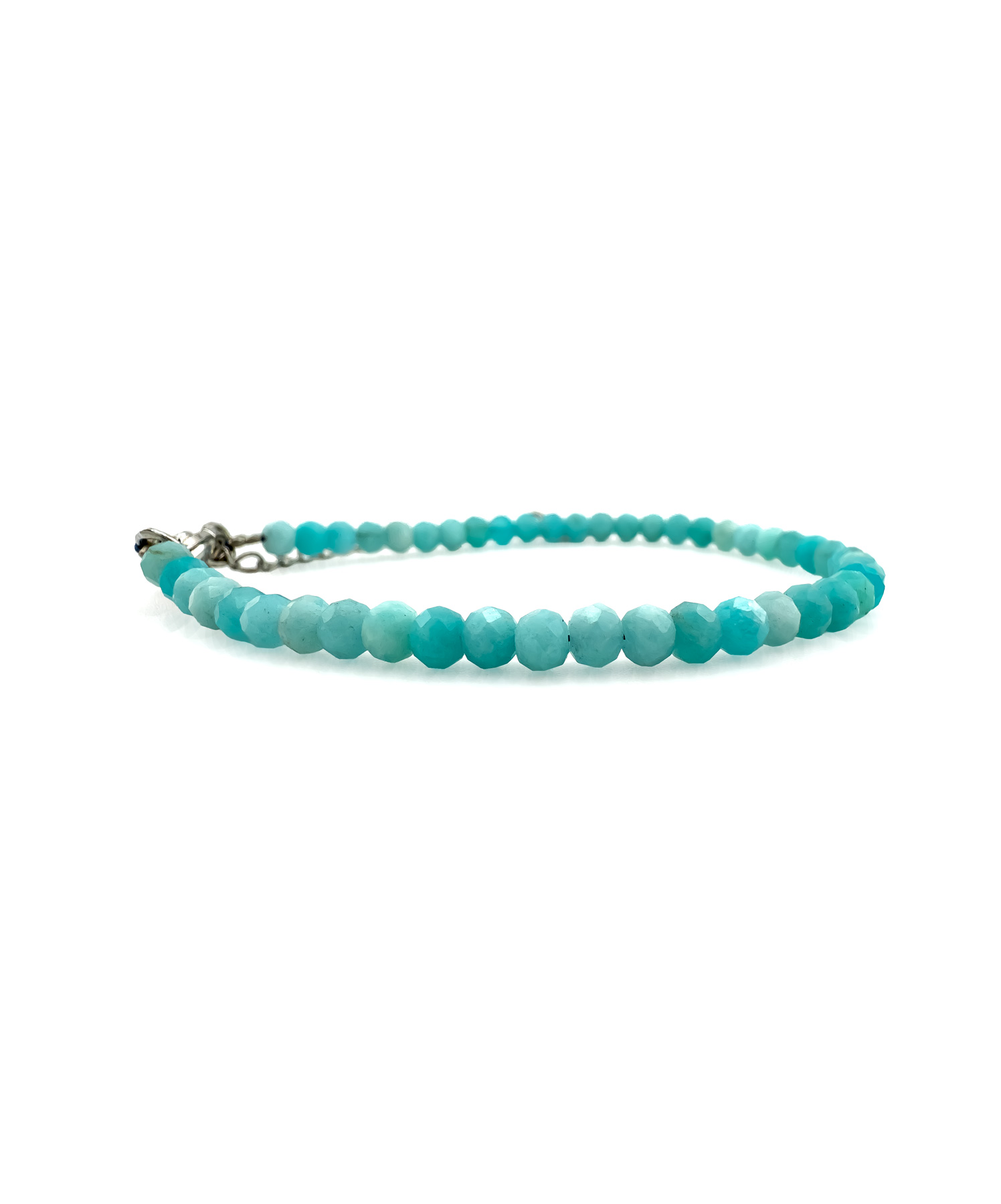 Das Armband besteht aus fein facettierten Amazonit-Perlen mit einem Durchmesser von 4mm, die durch ihren sanften Glanz und ihre abwechslungsreichen Farbnuancen faszinieren. Der Edelstahlverschluss ist verstellbar (17–22cm) und sorgt für eine flexible Passform, die sich jedem Handgelenk bequem anpasst. Ob als elegantes Accessoire im Alltag oder als stilvoller Begleiter zu besonderen Anlässen – dieses Armband überzeugt durch seine Vielseitigkeit und seine tiefe Symbolkraft.