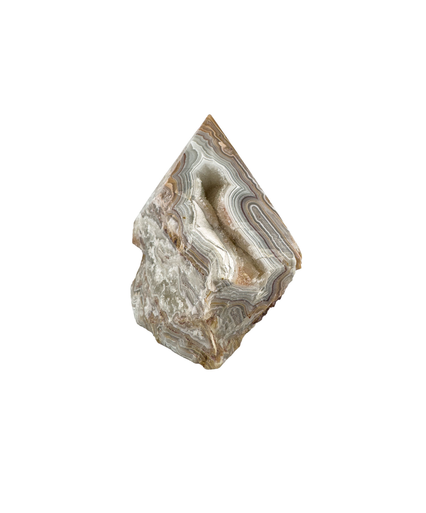 Die Crazy-Lace Achat Spitze ist ein unverwechselbares Unikat aus Mexiko, das die faszinierende Vielfalt der Natur in sich trägt. Mit ihrer harmonischen Kombination aus roh und geschliffen ist sie ein besonderes Stück für alle, die die Energie von Kristallen schätzen und gleichzeitig die Schönheit von Natursteinen in ihrer reinsten Form erleben möchten.