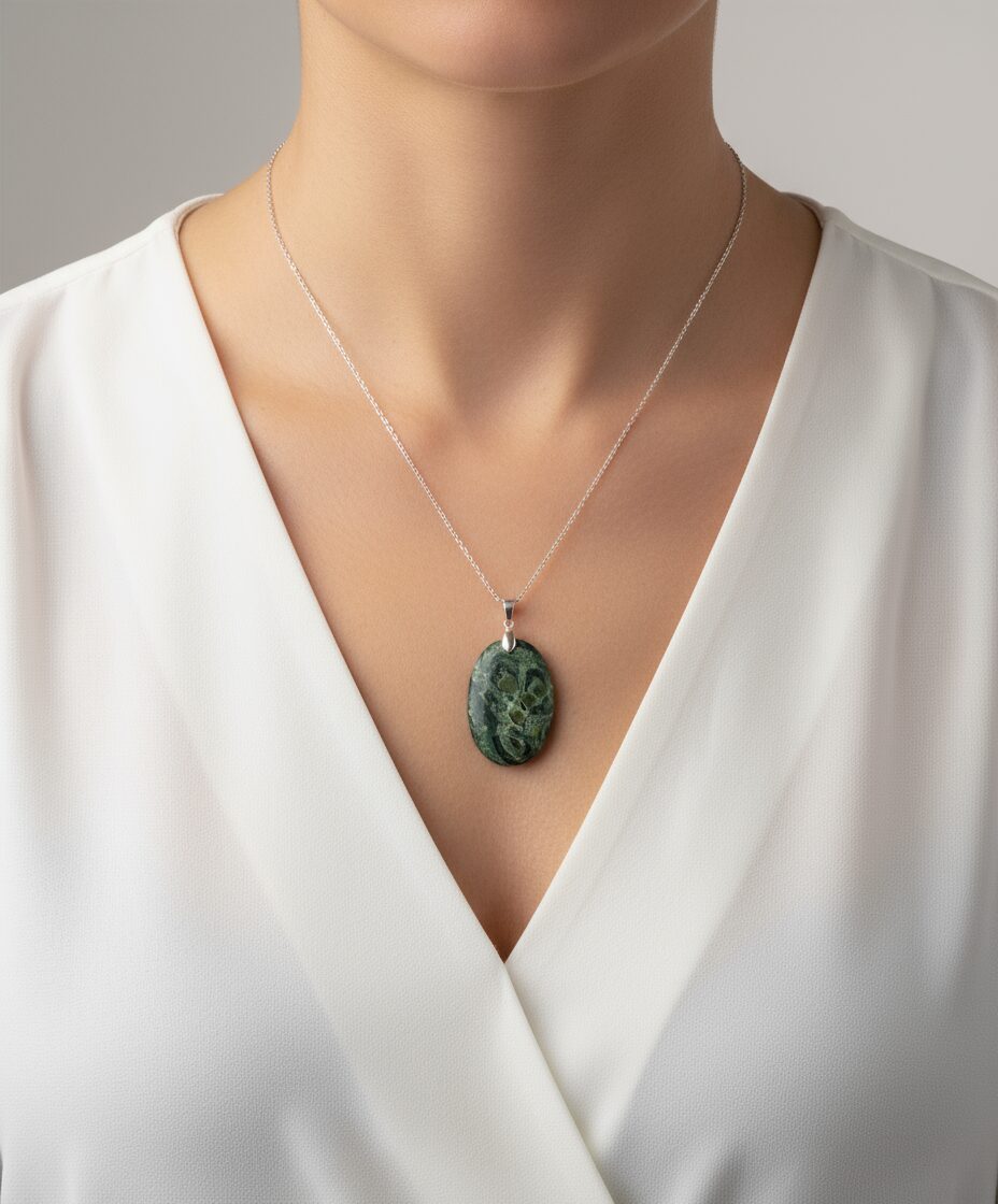 Der Eldarit Anhänger besticht durch seine einzigartige grüne Farbe, die für Erdung und Wachstum steht. Dieses kraftvolle Mineral wird oft als Symbol für Stabilität und spirituelles Wachstum betrachtet. Eldarit hilft, die Verbindung zur Erde zu stärken und sorgt für eine tiefere Balance im Leben.