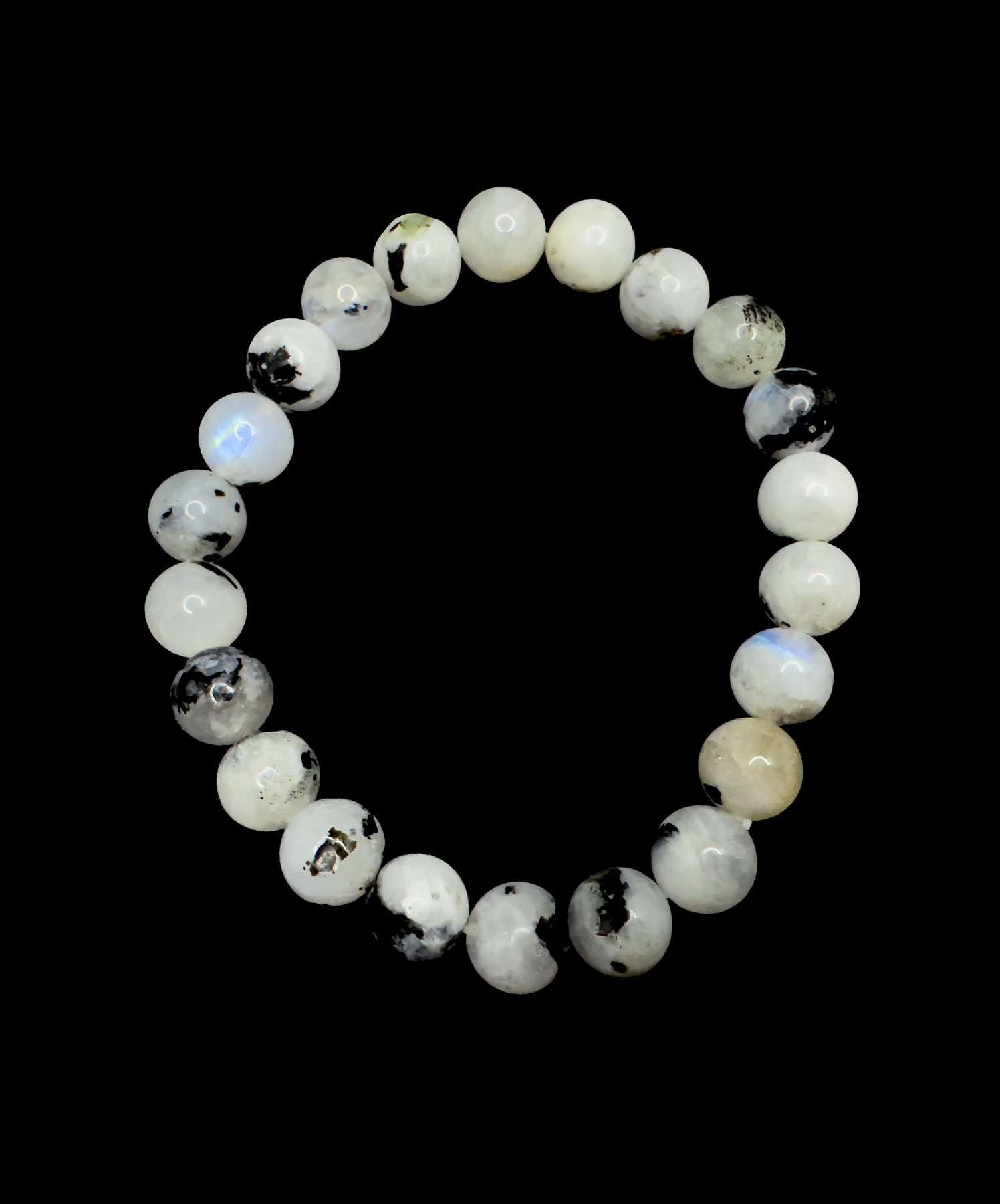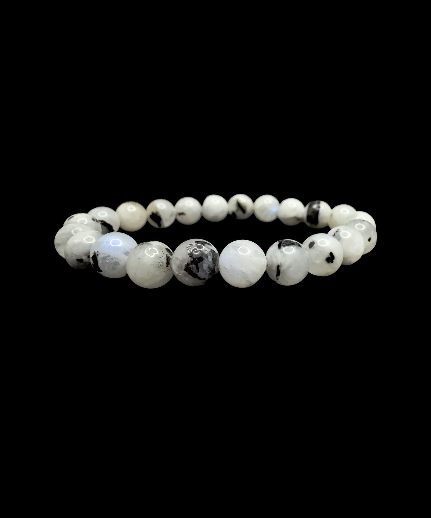 Mondstein Armband mit 8mm Perlen auf elastischem Band.