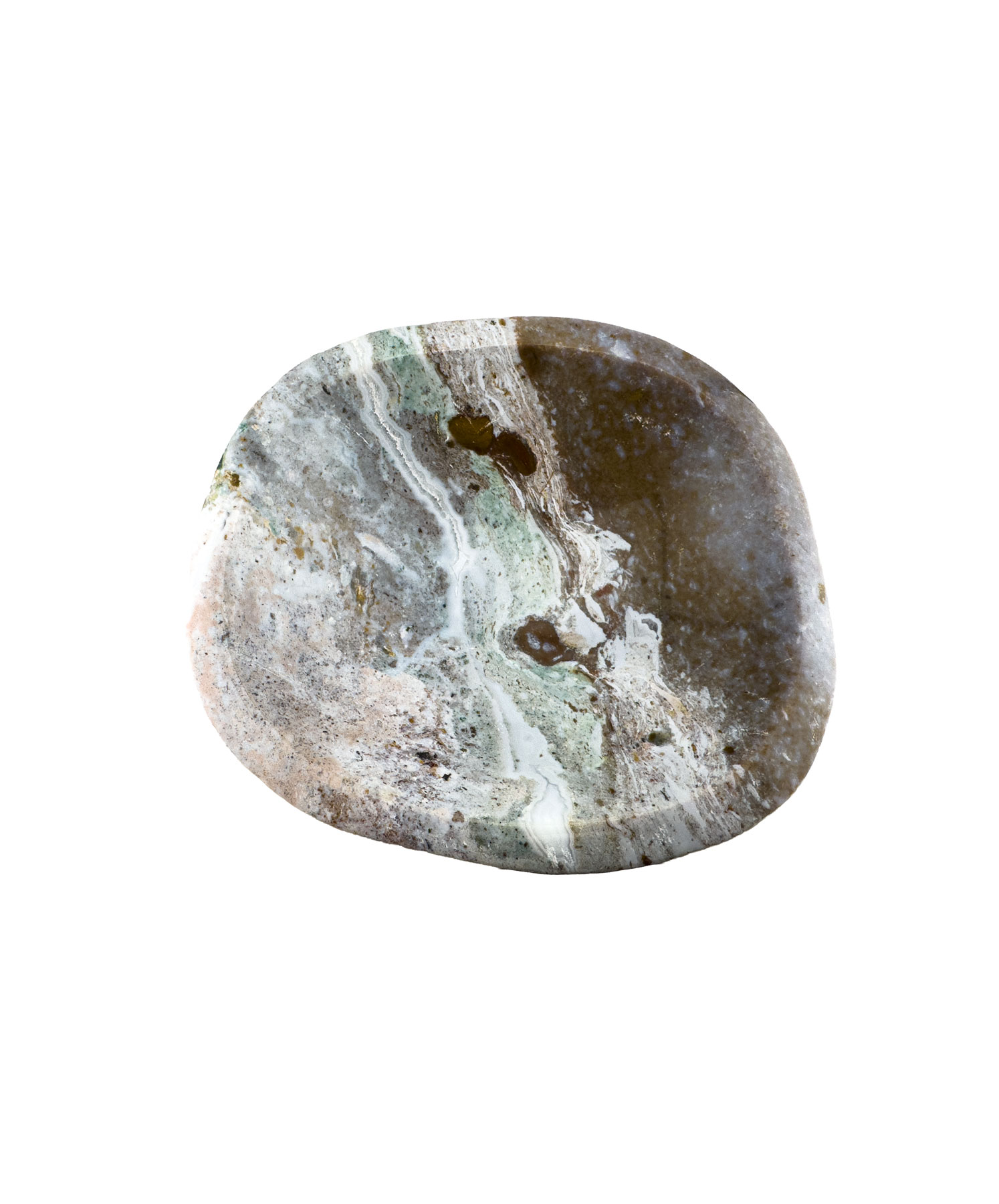 Ozeanjaspis ist nicht nur für seine außergewöhnliche Schönheit bekannt, sondern auch für seine positive Wirkung. Ihm wird nachgesagt, Ruhe, Gelassenheit und Harmonie zu fördern. Die glatte, polierte Oberfläche der Schale kombiniert Ästhetik mit Funktionalität – ideal, um kleine Gegenstände stilvoll zu präsentieren oder als reines Dekorationselement.