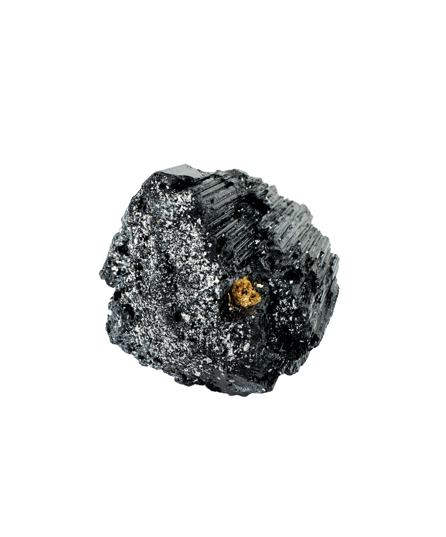 Schwarzer Turmalin Rohstein – eine eisenreiche Turmalin-Varietät, die in magmatischen und metamorphen Gesteinen wächst. Seine tiefschwarze Farbe symbolisiert Schutz und Erdverbundenheit. Die prismatische Kristallform mit typischen Längsrillen entsteht durch langsame Abkühlung mineralreicher Schmelzen – ein Prozess, der Millionen Jahre dauert.
