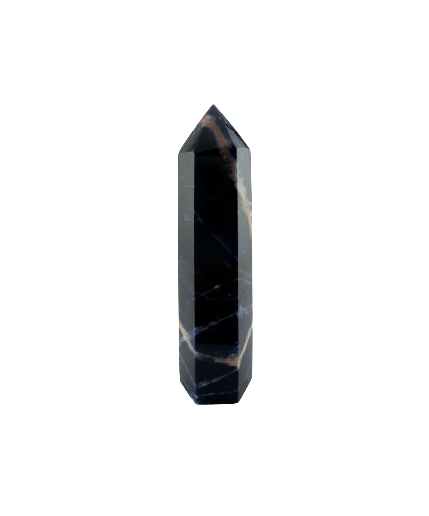 Die Sodalith Spitze ist ein edles Kristallstück, das durch seine tiefe, blaue Farbe mit hellen Einschlüssen besticht. Sodalith ist seit Jahrhunderten für seine beruhigende und harmonisierende Wirkung bekannt. Diese Spitze vereint natürliche Schönheit mit energetischer Kraft und ist sowohl für Sammler als auch für spirituell Praktizierende ein wertvolles Stück.