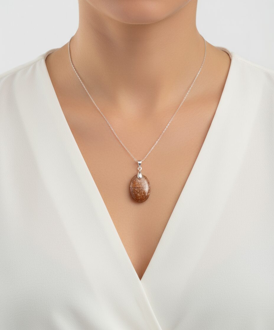 Dieser Sonnenstein Anhänger ist mehr als Schmuck – er ist ein Geschenk voller Symbolik. Der Sonnenstein steht für Licht, Wärme und Lebenskraft und wird traditionell als Glücksstein verschenkt.