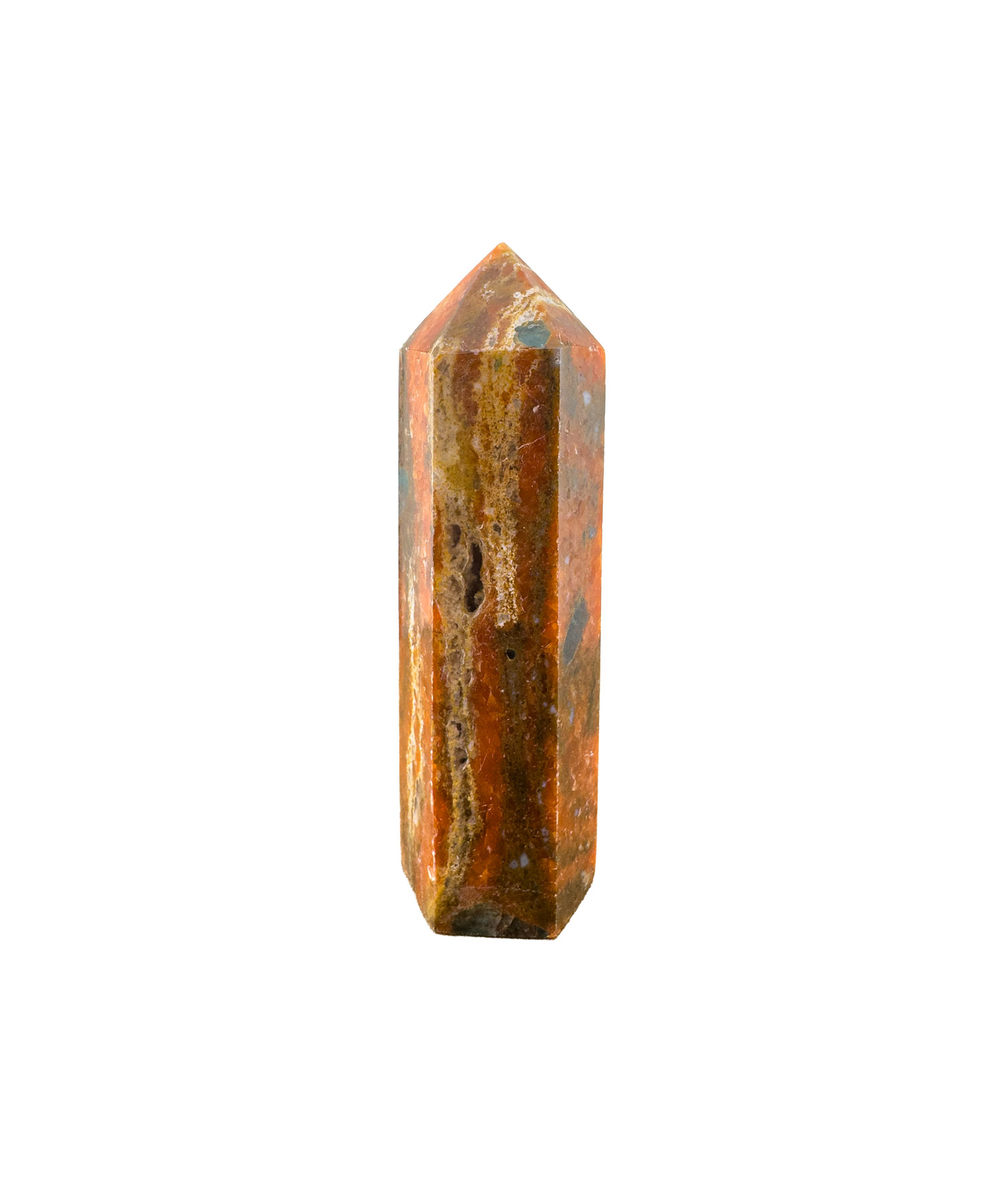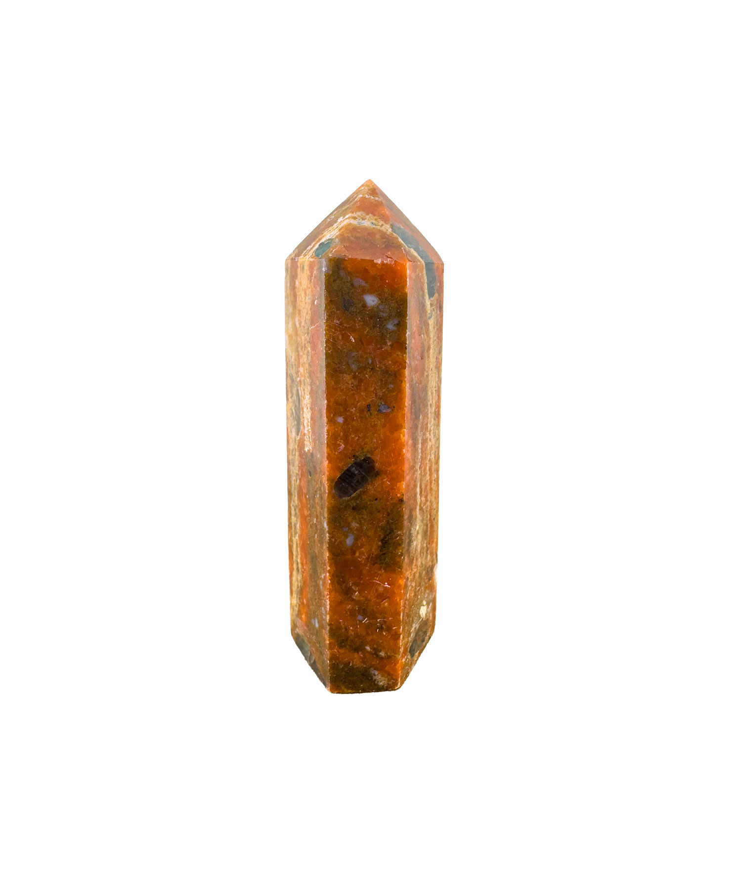 Der Apatit in dieser Spitze wirkt unterstützend und verstärkt die Wirkung des Sonnensteins. Er hilft, die eigene Intuition zu stärken, Kommunikationsfähigkeiten zu verbessern und das spirituelle Wachstum zu fördern. Zusammen entsteht eine kraftvolle Symbiose aus Licht, Freude und Klarheit.